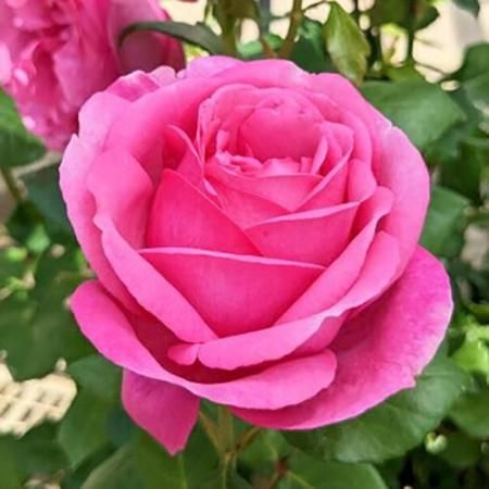ボリュームのあるピンク色の大輪花に、ダマスクと芳醇なフルーツ香を含む香りが素晴らしいバラです。